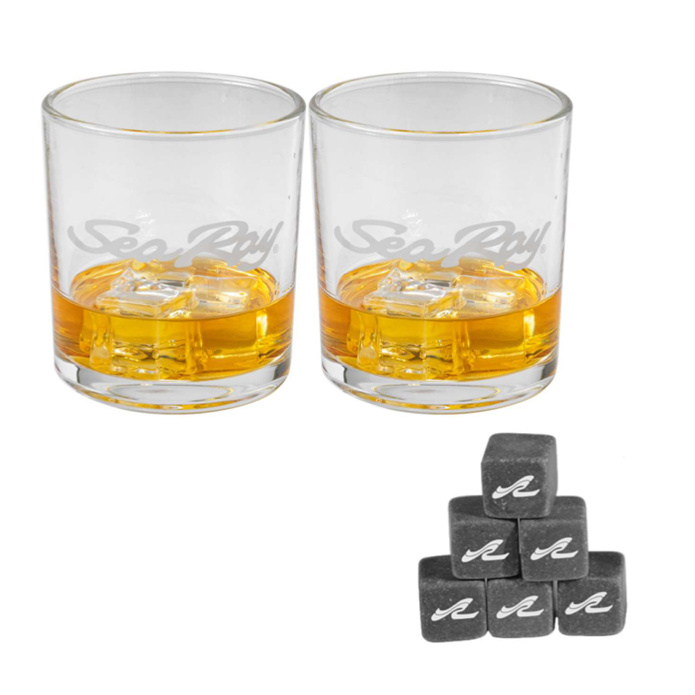 The set also comes with six premium stone ice cubes, each laser-etched with the Sea Ray logo to keep your drinks chilled without the worry of dilution. Whether you're relaxing with a fine whiskey, rum, or cocktail, this set brings a touch of maritime excellence to every sip.
